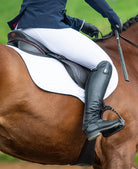 The knee and calf blocks are moveable to allow you to customise the amount and type of leg support you need. If you prefer to ride with short stirrups, or have short legs, position the block higher up on the Velcro pad.