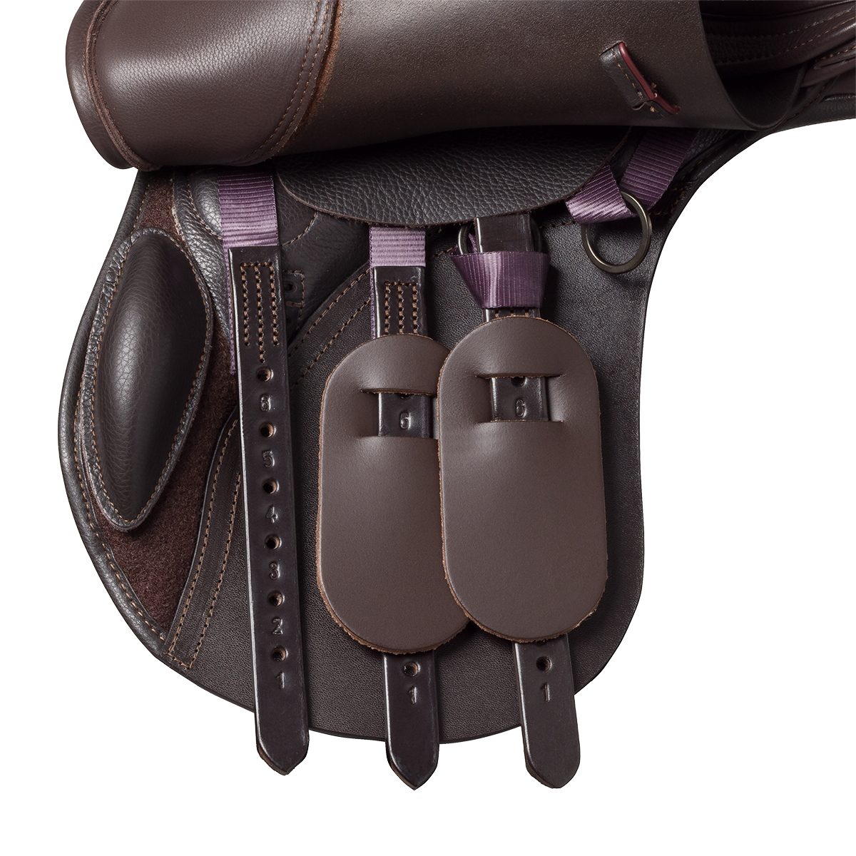 The Kent & Masters Pony Jump Saddle is fitted with three girth straps (billets), the third one being moveable.
