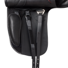 To increase saddle stability if the saddle slips forward, the saddle fitter has the option of removing the Velcro thigh block, moving the billet (girth strap) onto the point, passing it through the keeper at the bottom…