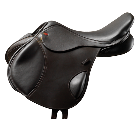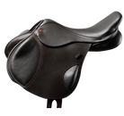 Close contact Cross-Country saddle with fixed long billets and flat-seated tree. Flocked panels designed to create minimum bulk. Surface-mounted hide-covered thigh and calf blocks provide dynamic support when riding with a shortened stirrup length.